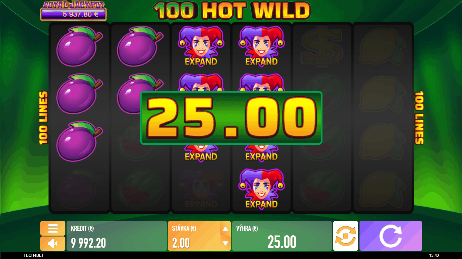 Hot Wild 100 je online automat od českého Tech4Bet, ktorý prináša do hry šťavnaté ovocie, žolíka a štedrú nádielku výherných možností.