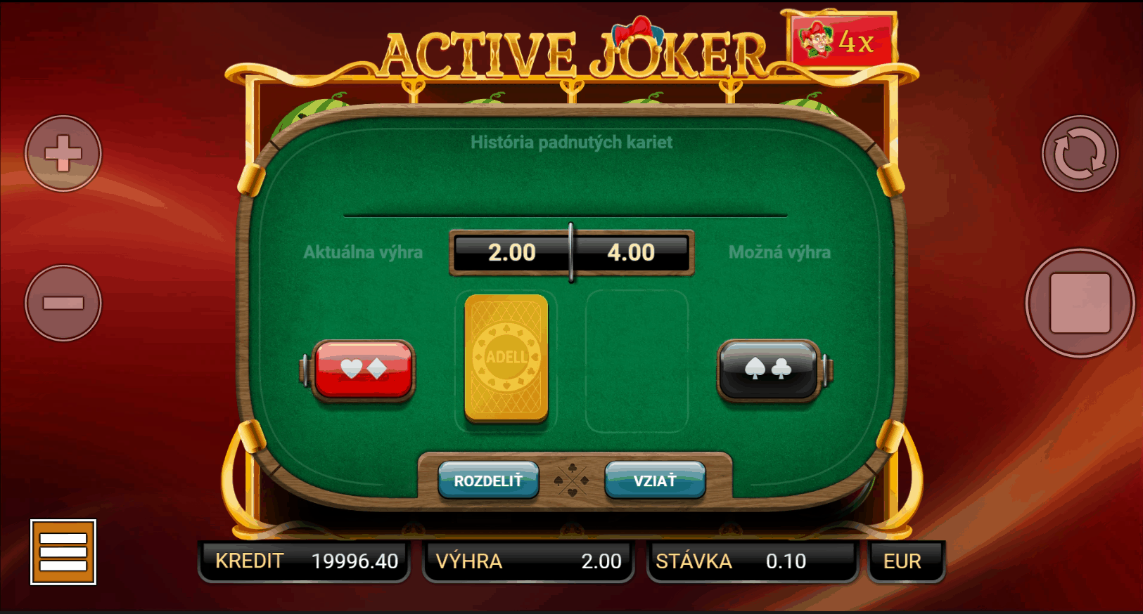 Active Joker je 4-valcový, 3-riadkový automat s 5 pevnými výhernými líniami.