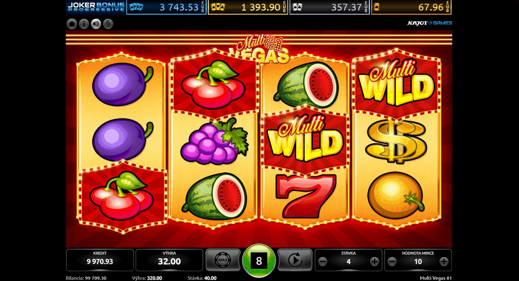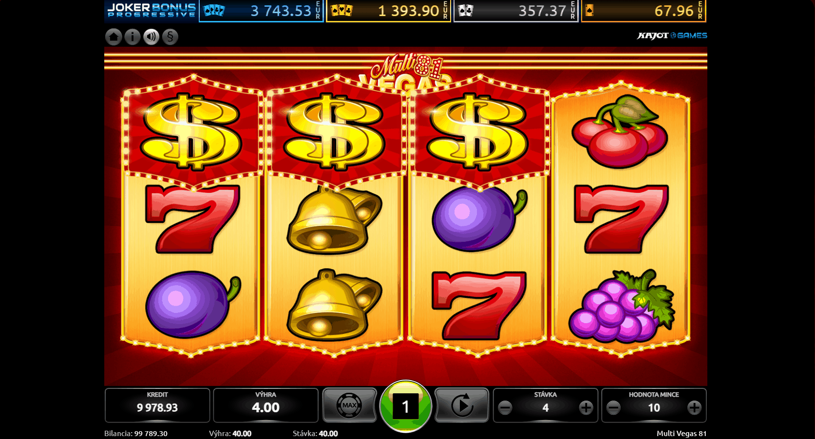 Multi Vegas 81 je 4-valcový, 3-riadkový automat s 81 výhernými líniami.