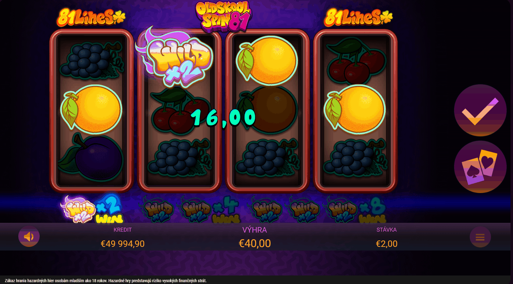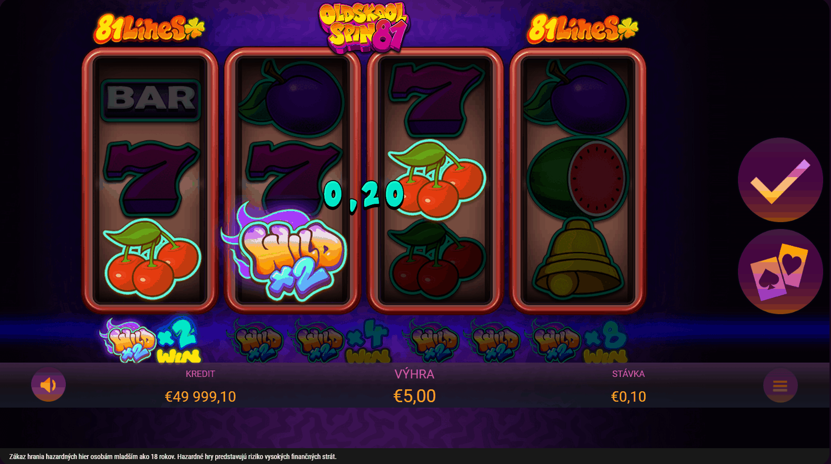 Oldskool Spin 81 je 4-valcový automat s tromi riadkami a 81 spôsobmi výhry.