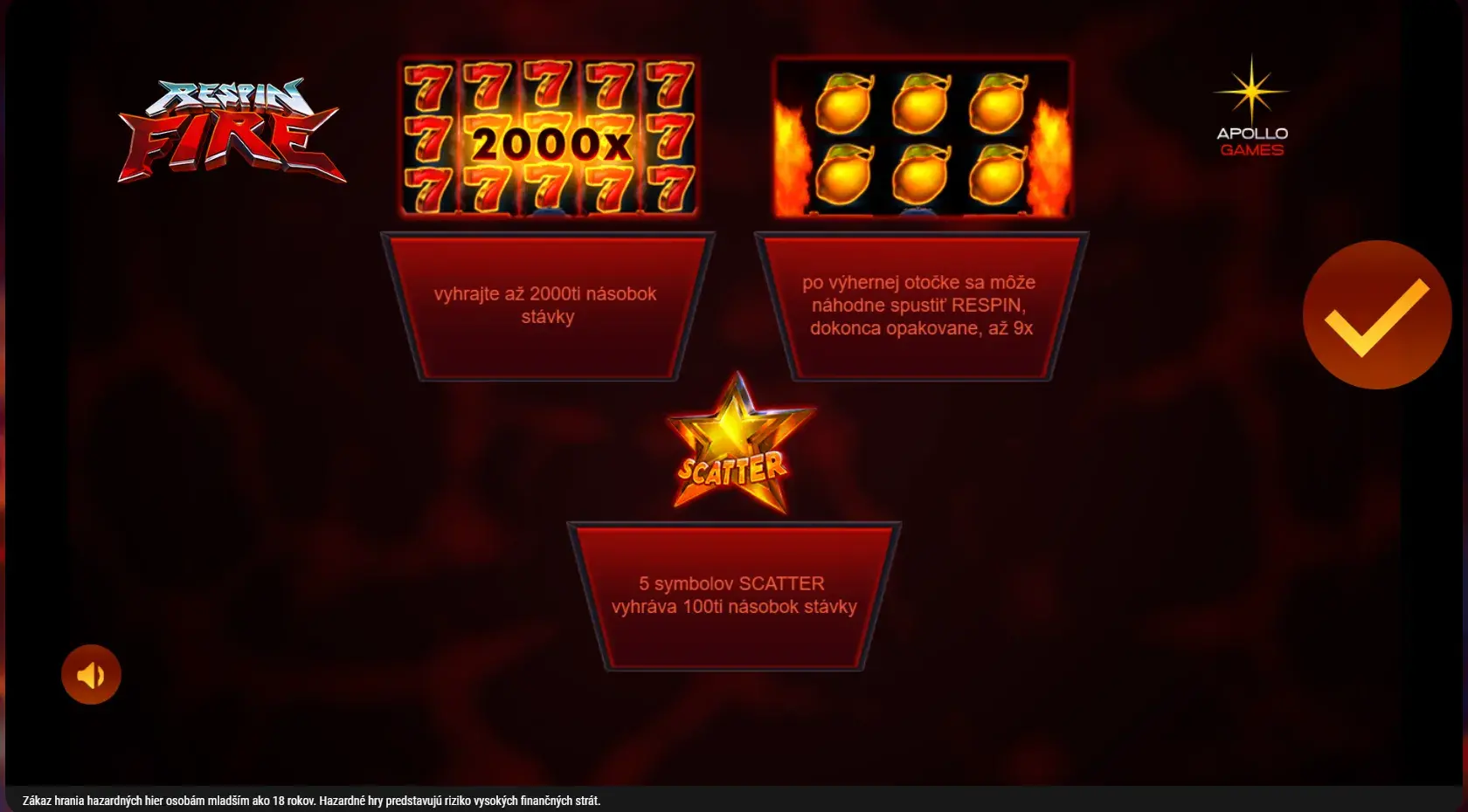 Plamene, efekty a dynamická hudba robia z Respin Fire atraktívny slot, ktorý ťa udrží v napätí počas celej hry.