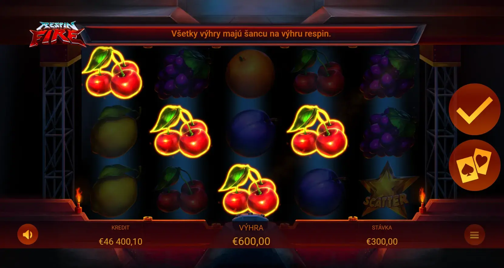 Respin Fire je 5-valcový online automat s 3 riadkami a viacerými výhernými líniami.